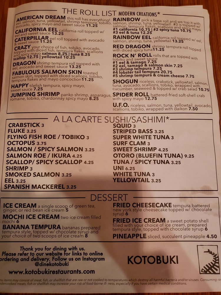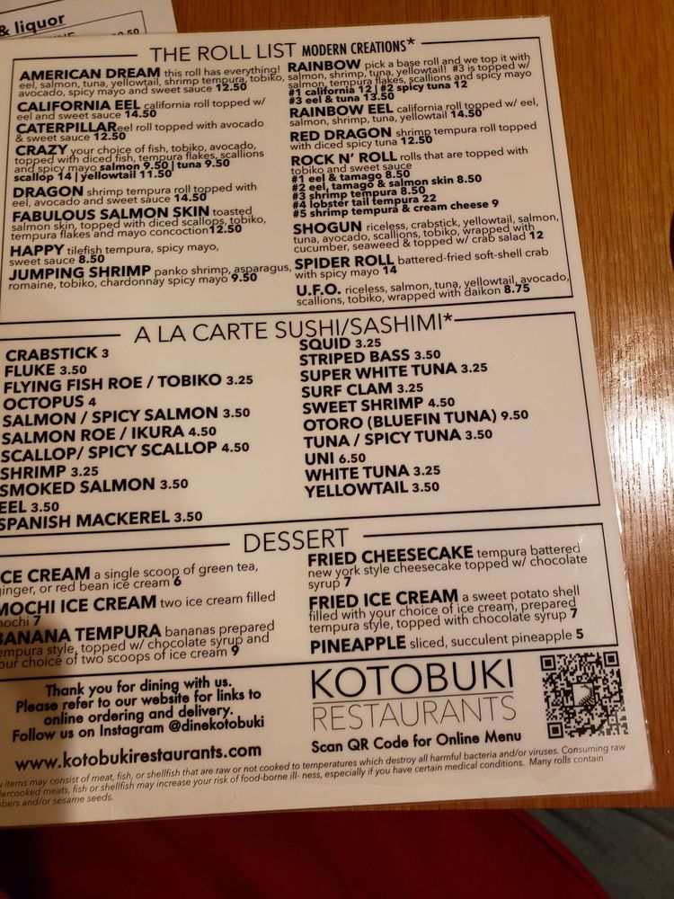 Introducing the menu at Kotobuki Restaurant in Babylon, NY, a Japanese sushi bar offering a variety of delicious dishes and appetizers. From Chirashi to Tempura, Katsudon to Teriyaki, the menu is extensive with options for both lunch and dinner. Appetizer favorites like Crispy Rice & Spicy Tuna, K-Mac Sliders, and Rock Shrimp provide unique and flavorful choices. Customers rave about the freshness of the fish, the excellent service, and the cozy ambiance of the restaurant. With options for takeout, delivery, and catering, Kotobuki is a top choice for sushi and Japanese cuisine lovers. Don't miss out on the exceptional sushi dining experience at Kotobuki!